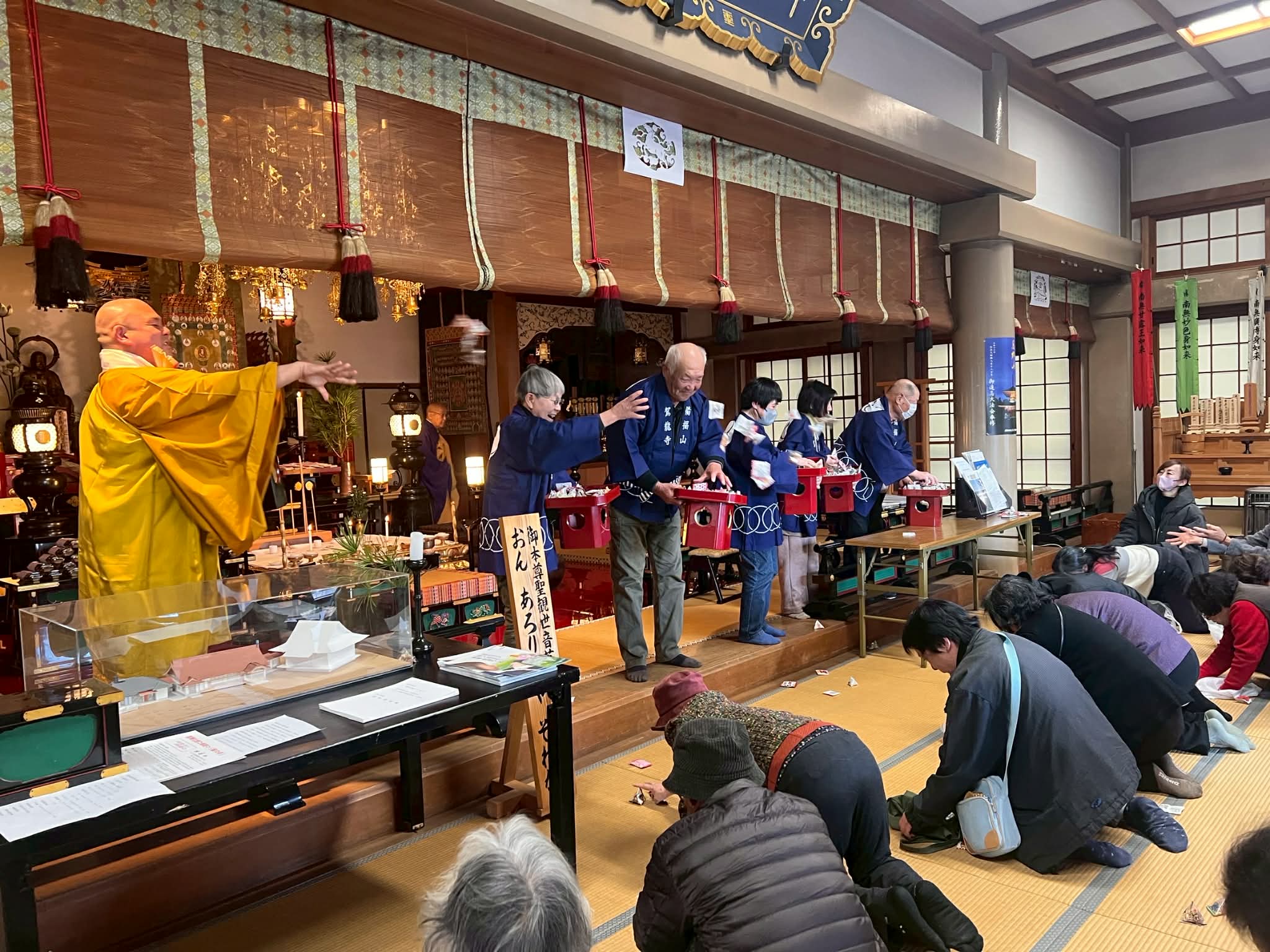 本堂において、星供曼荼羅を奉祠し、節分法会が厳修されます。各人の北斗七星・十二宮・九曜二十八宿の星をまつることで、除災招福・福寿増長を祈念します また、夕刻には護摩堂において北斗金輪護摩供が奉修されます。